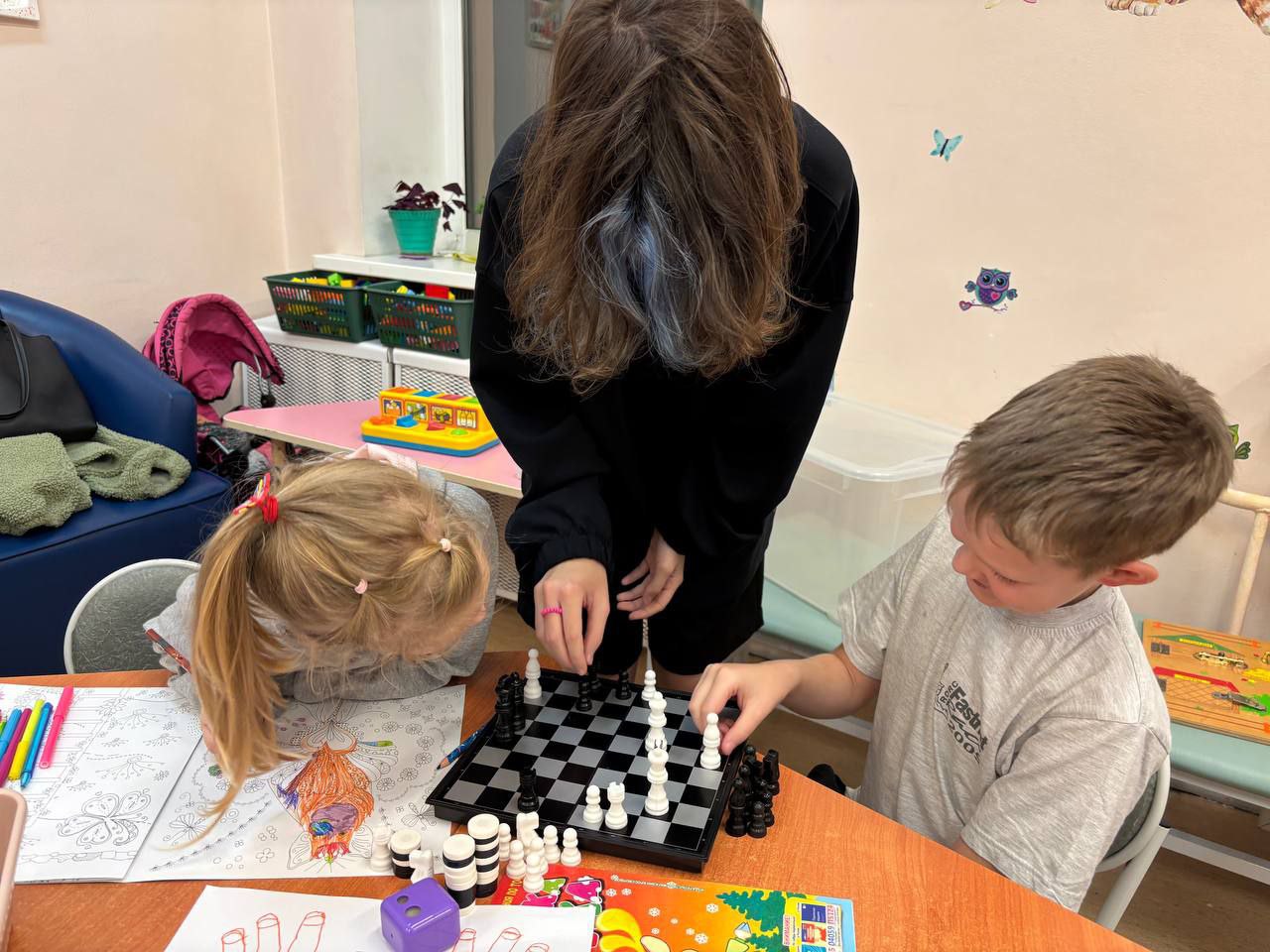 Сначала мы погрузились в мир шахмат — играли тихо и сосредоточенно... ну, почти 🙂